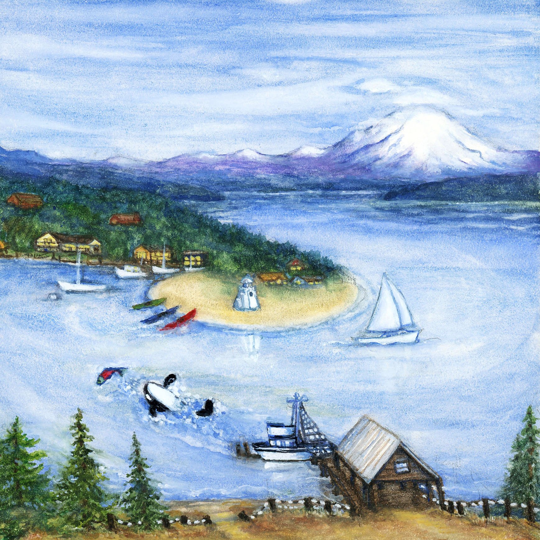 Gig Harbor II, watercolor, 8”x8”x2” birch gallery wrap SOLD